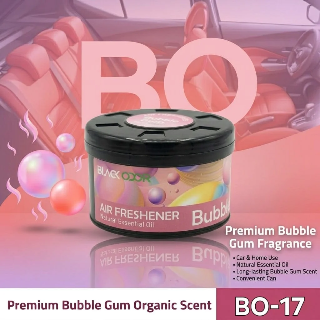 Enjoy a fresh and enjoyable driving environment with Black Odor BO-17 Air Freshener – Bubble Gum. This premium air freshener is designed to eliminate unpleasant odors while delivering a sweet bubble gum fragrance.