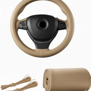 Beige Stitching Steering Wheel Cover – DIY Hand-Stitched Leather Steering Cover for Cars